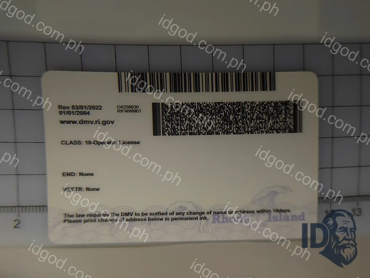 In the world of fake IDs, material is everything. Standard PVC IDs feel cheap and are easy to spot. Our Rhode Island IDs are crafted from multi-layered polycarbonate, a rugged, tamper-proof plastic used by motor vehicle departments across the US. This isn't just a card; it's a credential. The polycarbonate process allows for laser-engraved personal data that is etched into the core layer, not just printed on top. This means no peeling text, a perfectly smooth surface, and a feel that passes the strictest tactile tests. The complex overlay includes precise tri-color Optically Variable Ink (OVI) on the state seal, micro-printed text visible under magnification, and accurate ultraviolet (UV) imagery that glows under a black light. From the correct periwinkle blue background and anchor imagery to the precise font weights and spacing, every detail is meticulously replicated. We understand that reliability is key, which is why every ID includes a strategically encoded scannable 2D barcode. This focus on high-fidelity design and robust construction ensures your ID performs when it matters most, providing confidence and discretion in any situation.